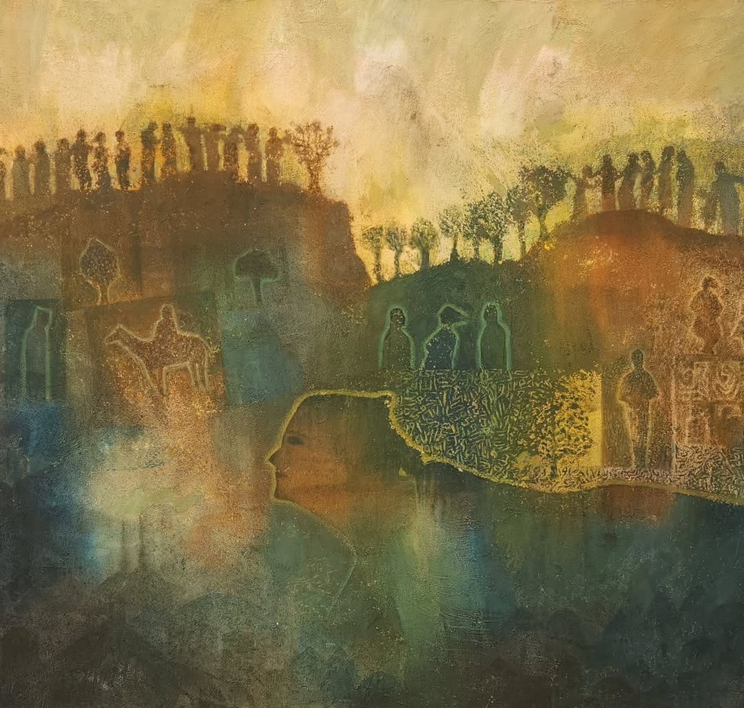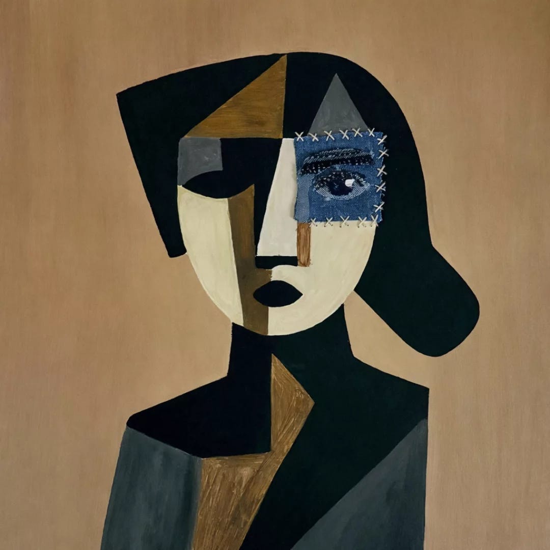 The stitched eye symbolizes consciousness re-shaping after fracture; a vision gained only through pain. Abstraction in this work is a philosophical position that refuses to deprive man of one identity. It’s a silent impression that asks an open question:
